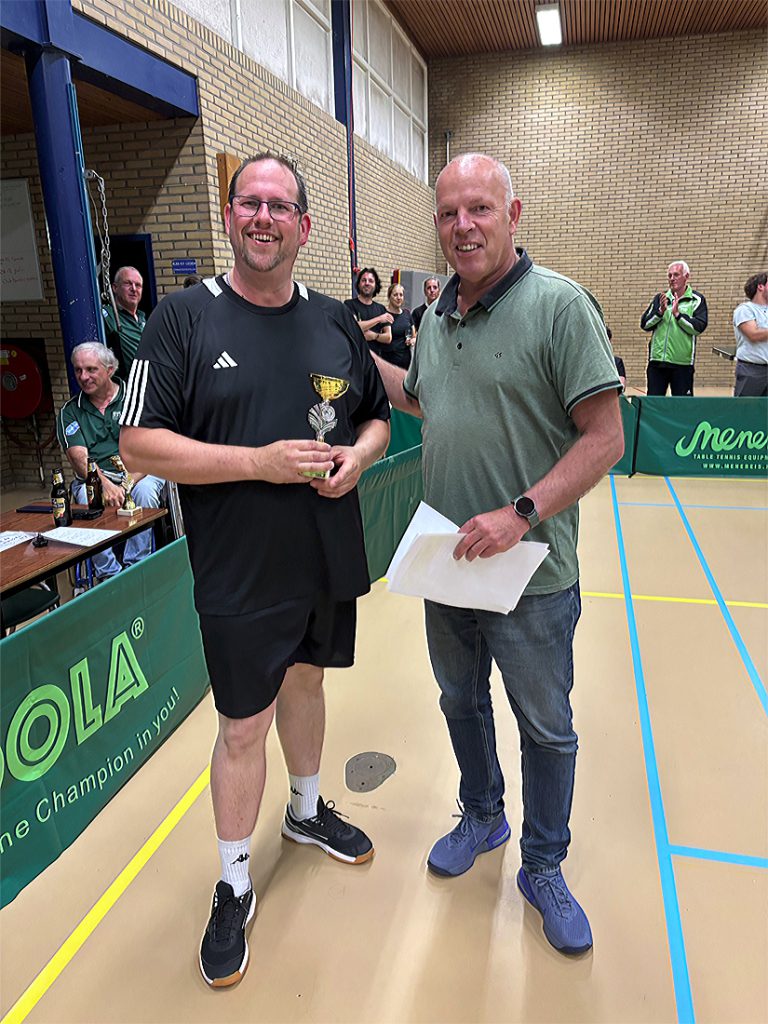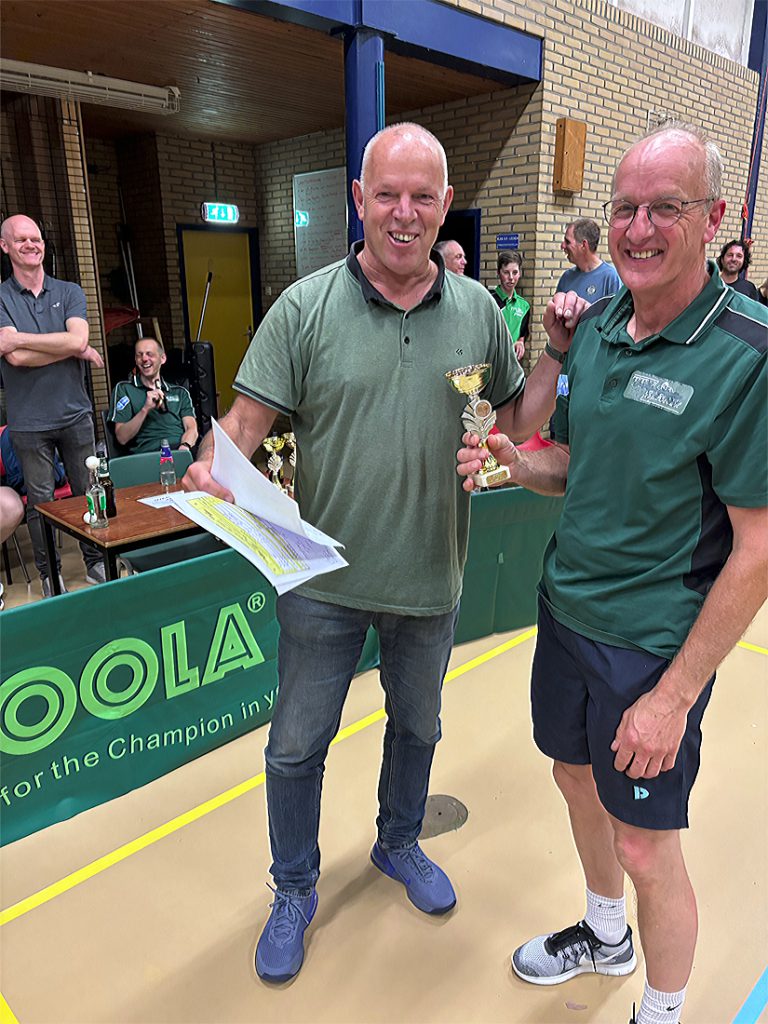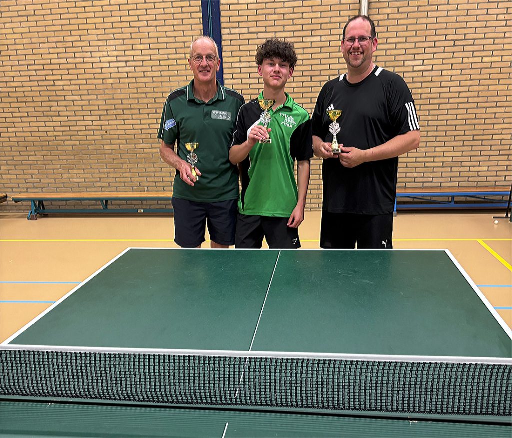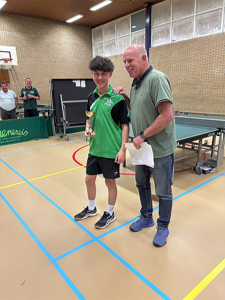 André Terlouw en Liam van Lambaart maakten er een echte finale van: 13-15, 9-11 en 8-11. Liam dus de 2e jeugdspeler die er met de hoofdprijs vandoor ging met een uitnodiging voor het CK 2e/3e klassers a.s. dinsdag op zak.